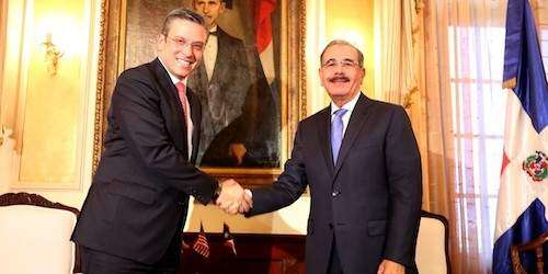 El gobernador Alejandro García Padilla se reunió en la tarde del jueves, con el presidente de la República Dominicana, Danilo Medina, con el canciller Jose Manuel Trullols y el embajador de Estados Unidos en la República Dominicana, James ‘Wally’ Brewster para discutir iniciativas que permitan aumentar el intercambio comercial, así como estrategias para ampliar la seguridad entre ambos países.