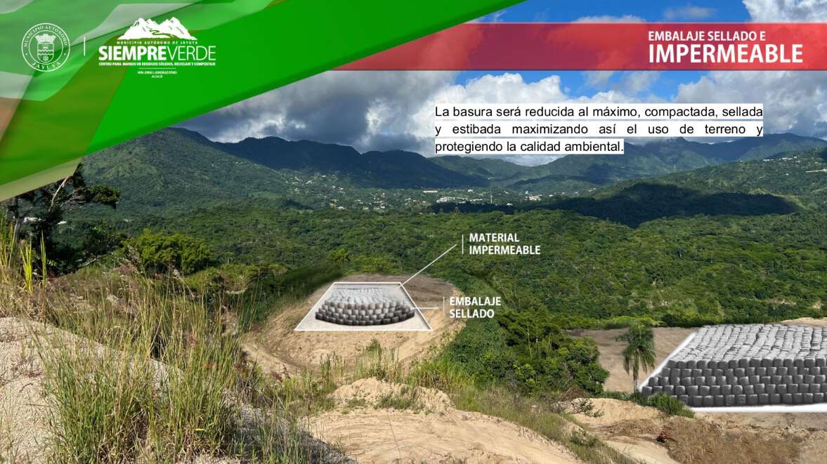 “Jayuya: Siempre Verde ofrecerá el ciclo completo de manejo de desperdicios sólidos con tecnología de última generación cubriendo el recogido, trituración, embalaje, reciclaje y compostaje. Por primera vez en Puerto Rico vamos a tener una planta donde se reduce la basura al máximo, se compacta, se embala y se estiba. Entre los beneficios que ofrece este sistema está la conversión de gas metano a energía renovable, la eliminación de plagas en un 99.8%, un mejoramiento de 95% en la calidad del aire y la protección del suelo con la impermeabilización del mismo”, afirmó el alcalde jayuyano, Jorge L. González Otero.