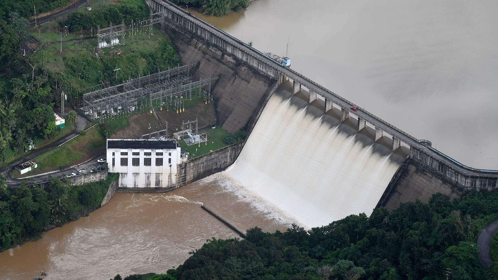 En otro vídeo puede apreciarse el azote de la represa Dos Bocas ante la lluvia y los vientos huracanados. De acuerdo al autor de las imágenes, el nivel de agua en la represa Dos Bocas sobrepasó los 27 pies por encima de lo normal e inundó la planta de la AEE.