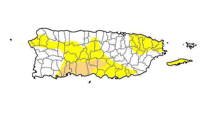 Según los datos, el 9.21 por ciento de la isla presenta el segundo nivel de sequía, sequía moderada. Los pueblos que presentan parte del terreno bajo estas condiciones son Guánica, Yauco, Guayanilla, Adjuntas, Peñuelas, Ponce, Juana Díaz, Villalba y Coamo.