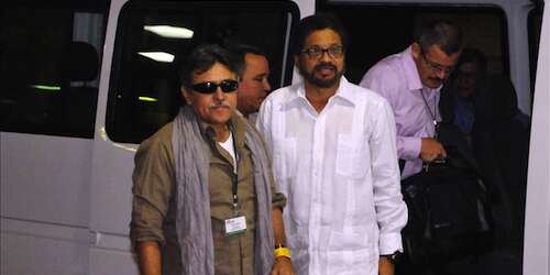 El número dos de las FARC y su líder negociador, Luciano Marín Arango, alias ‘Iván Márquez’, leyó una declaración por el fin de ciclo en la que los rebeldes vuelven a acusar al Gobierno de traicionar el espíritu del acuerdo general pactado para los diálogos.