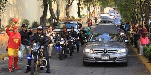Mexico – El cortejo fúnebre de Roberto Gómez Bolaños ‘Chespirito’ llegó hoy a las instalaciones de la empresa Televisa en el sur de Ciudad de Mexico procedente del aeropuerto de Toluca, distante unos 70 kilómetros, a donde el feretro con el cuerpo del comediante llegó desde Cancún.