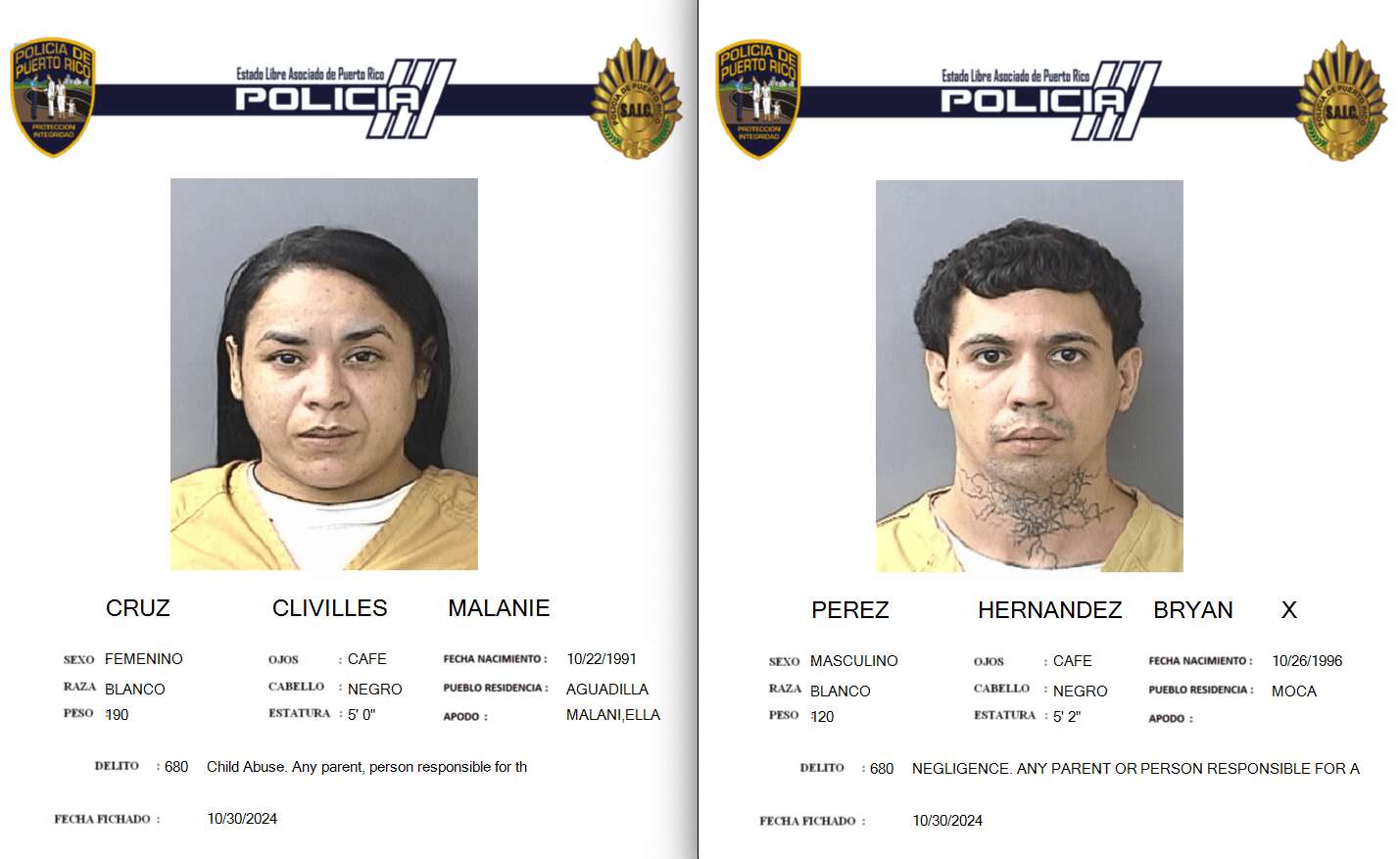 La fiscalía de Aguadilla radicó cargos el miércoles contra Bryan Pérez Hernández, de 27 años, y residente de San Sebastián, y Melanie Cruz Clivilles, de 33 años y residente de Aguadilla, por la muerte de una menor de 13 años ocurrida en agosto del año pasado.