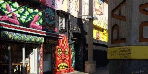 Lo interesante del recorrido por las calles riopedrenses fueron los murales colocados en pasadizos y establecimientos abandonados agregándole vitalidad a la zona. Más de uno de los participantes del evento se tomó fotos en esos espacios artísticos.